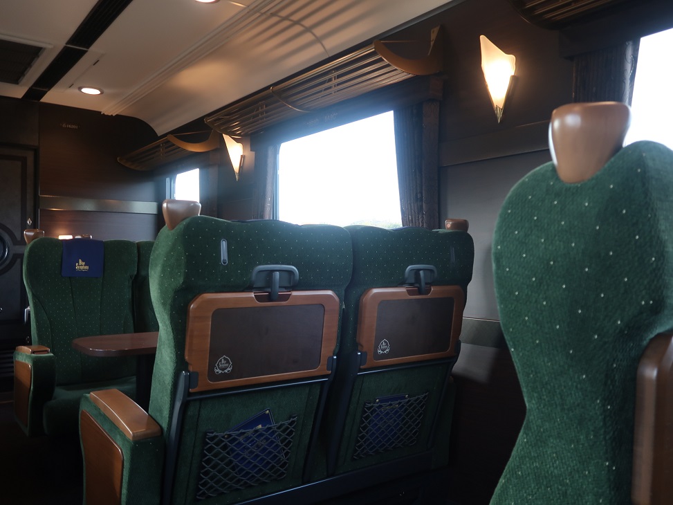 上の標準的な特急と比べると、かなり重厚な車内の雰囲気です。